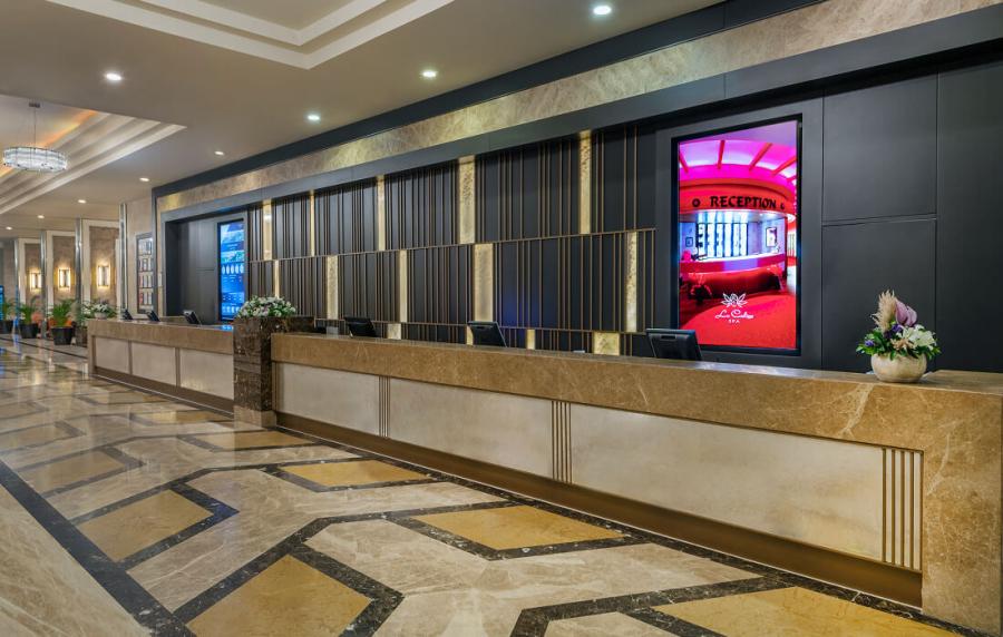 Otele girişte taze çiçekle karşılama,
